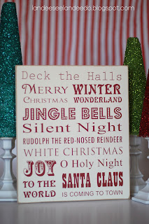#4- 10 x 24 Christmas Subway Art - $18 (includes vinyl words, paint and board) Yours would have a solid background. You can choose what color goes with your decor.